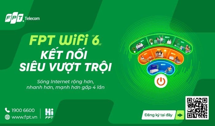 Đăng ký ngay FPT Wi-Fi 6 hôm nay để biến mọi trải nghiệm Internet của bạn trở nên nhanh chóng, mượt mà và an toàn hơn. Với FPT Wi-Fi 6, FPT Telecom tự tin mang lại cho bạn phủ sóng không giới hạn và kết nối siêu vượt trội với wifi thế hệ mới nhất.