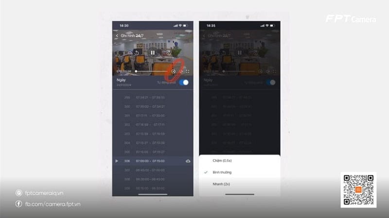 Một trong những nâng cấp nổi bật của FPT Camera 5.1 là khả năng tua nhanh với ba tốc độ: 0.5x, 1x và 2x. Điều này mang lại trải nghiệm xem hình ảnh mượt mà và linh hoạt hơn bao giờ hết. Cho dù bạn đang xem lại khoảnh khắc quan trọng hoặc kiểm tra sự kiện trong thời gian thực, tính năng này đảm bảo rằng bạn sẽ không bỏ lỡ bất kỳ chi tiết nào.