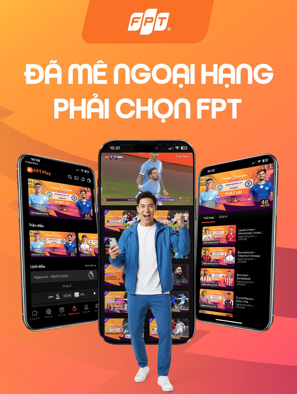 Hiện nay, bạn có thể dễ dàng nâng cấp, đăng ký Combo Thể Thao của FPT để xem trọn vẹn, trực tiếp các trận đấu Ngoại Hạng Anh website https://fpt.vn/ngoai-hang-anh.